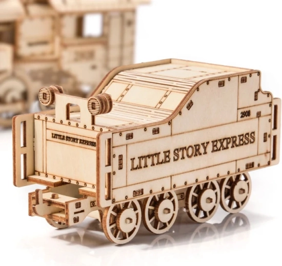 A LITTLE STORY fa 3D gőzmozdony kirakója ragasztó nélkül kínál nagyszerű makettezési élményt. 279 precízen kivágott és számozott elem minőségi fából és rétegelt lemezből könnyen kitörhető a lapból, majd részletes útmutató szerint összeilleszthető. A közepes nehézségű készlet fejleszti a koncentrációt, a türelmet és a finommotorikát, elkészítve pedig stílusos lakásdekorációként szolgál.