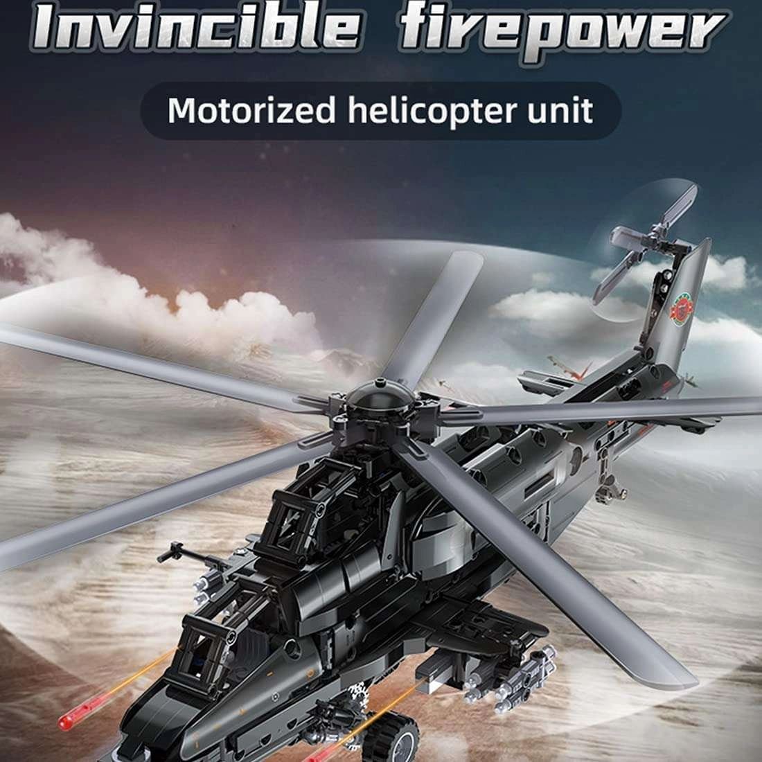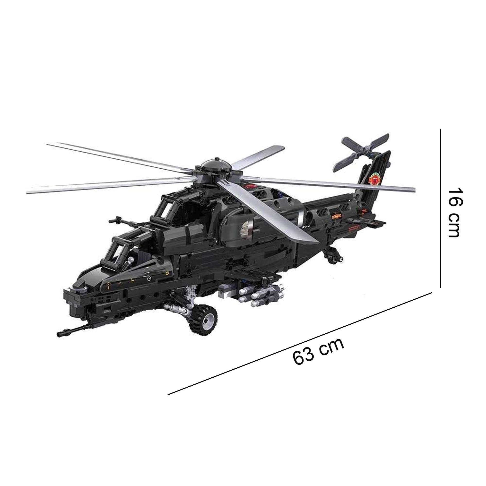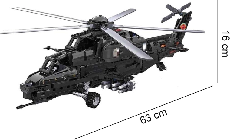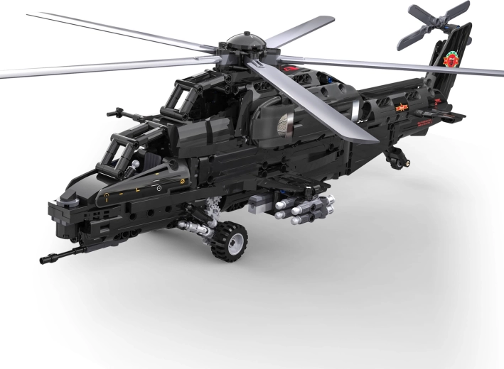 A Just Move It sorozat építőkészlete örömet okoz minden lelkes konstruktőrnek, aki szereti a technikai modelleket valósághű funkciókkal. A WZ-10 helikopter elegáns fekete színben, szürke részletekkel tűnik ki, kifinomult rotormechanikával, amely kézzel és haladás közben is forgatható, valamint részletes törzzsel és nyitható pilótafülkével.