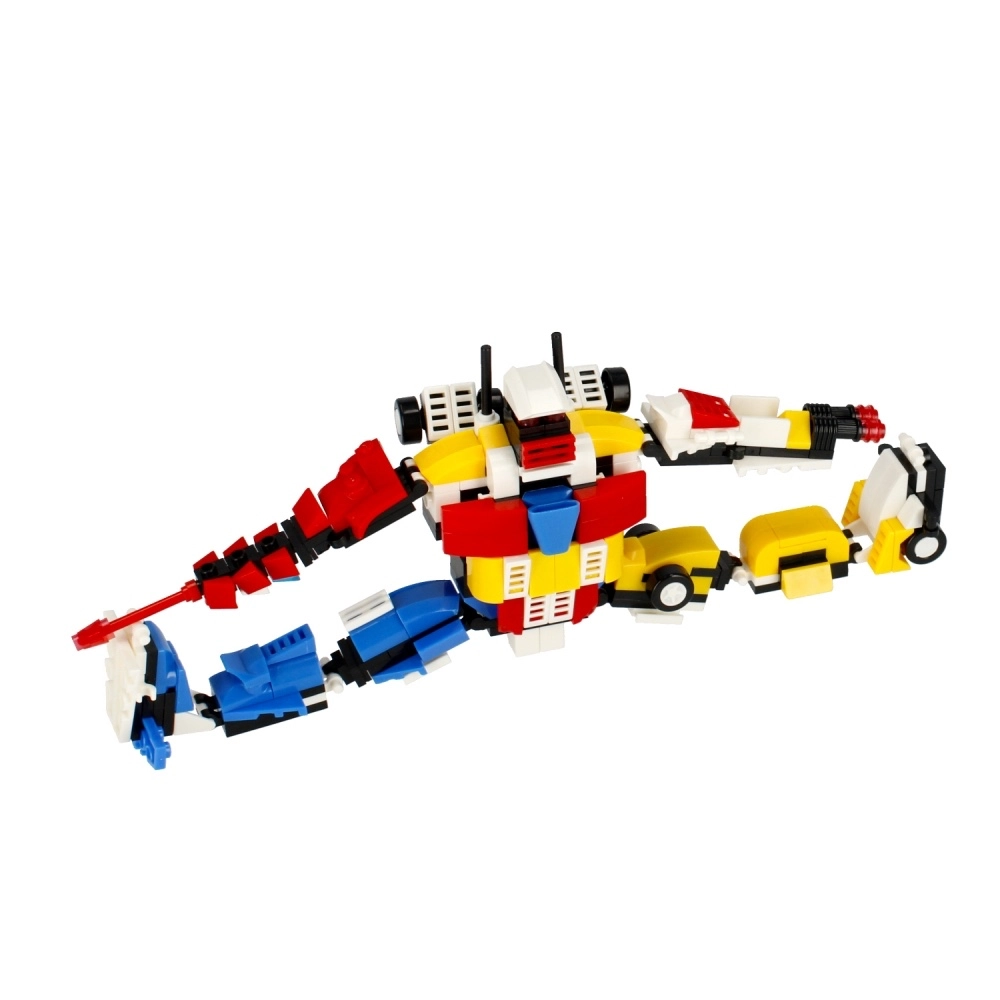 A piros, kék, sárga, fehér és fekete kombinációja karakteres modellt alkot olyan részletekkel, mint az „antennák”, fegyverek és mechanikus elemek.