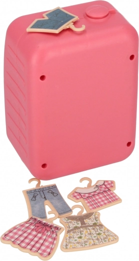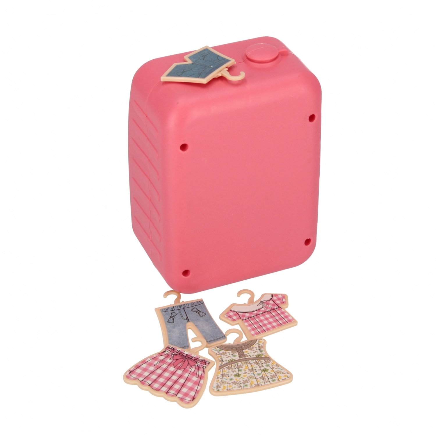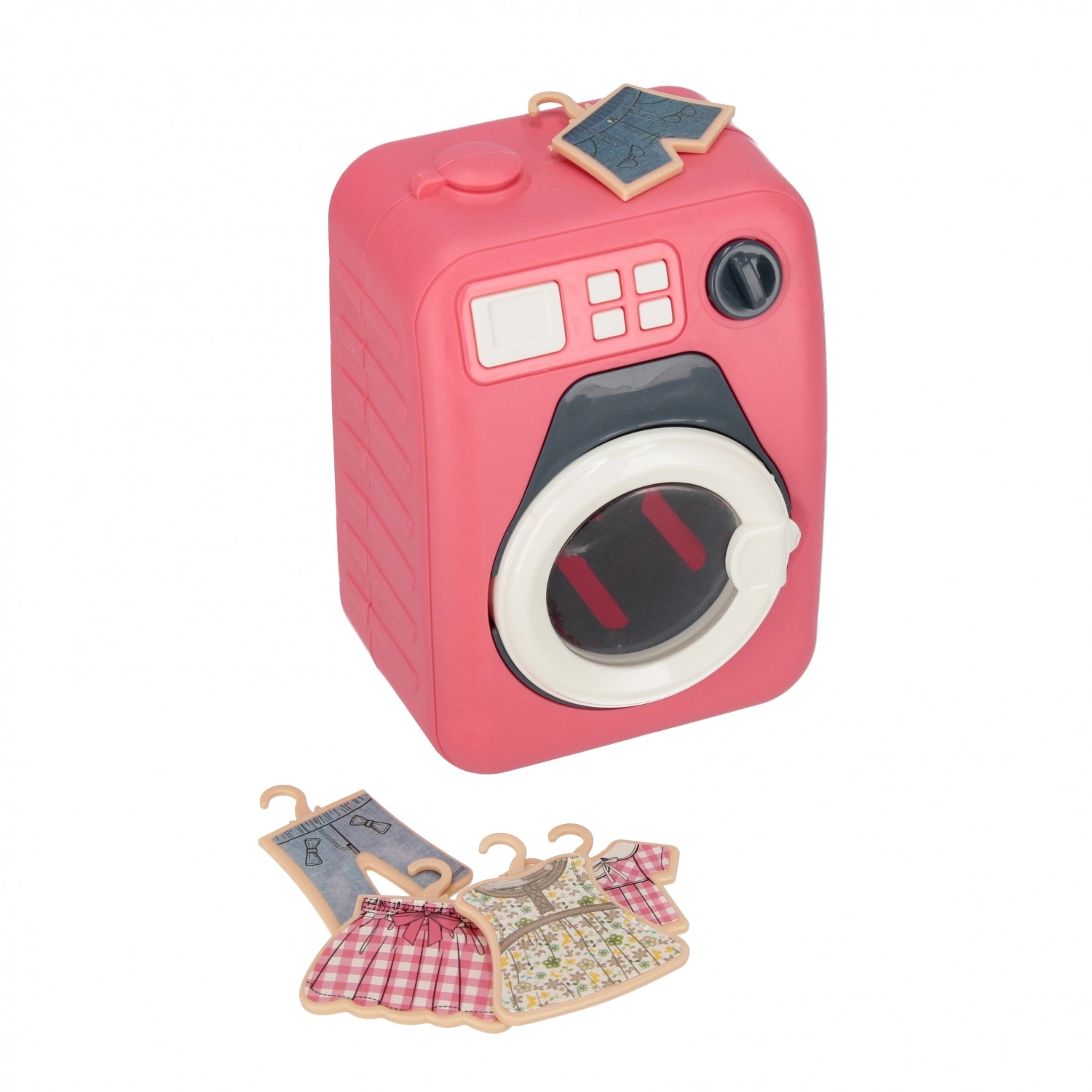 Rózsaszín, elöltöltős „mosógép” átlátszó ajtóval és kezelőpanellel. Tartozik hozzá 5× vállfa ruhácskákkal – a gyerekek moshatnak, teregethetnek és válogathatják a ruhát.