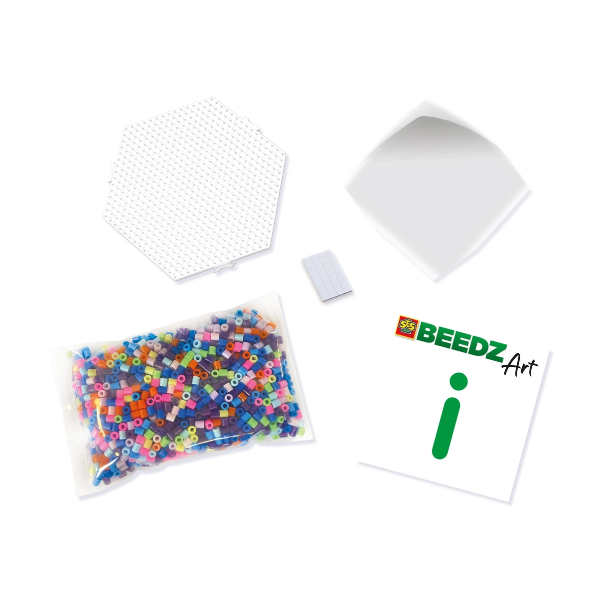- Hatszögletű alaplap, 1600 vasalható gyöngy, vasalópapír, habszalag, útmutató