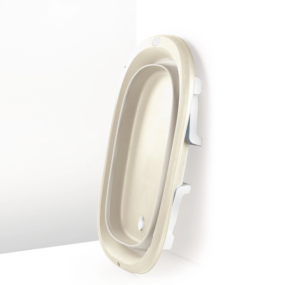 Praktikus, összecsukható babakád elegáns bézs–fehér színben, amely bárhol kényelmes és biztonságos fürdetést biztosít a babának. A összecsukható kialakításnak köszönhetően helyet takarít meg a fürdőszobában, a stabil lábak biztonságot nyújtanak fürdetés közben, a zárható leeresztő dugó pedig megkönnyíti a víz kiengedését. Tartós műanyag anyagokból készült, 6 hónapos kortól ajánlott.