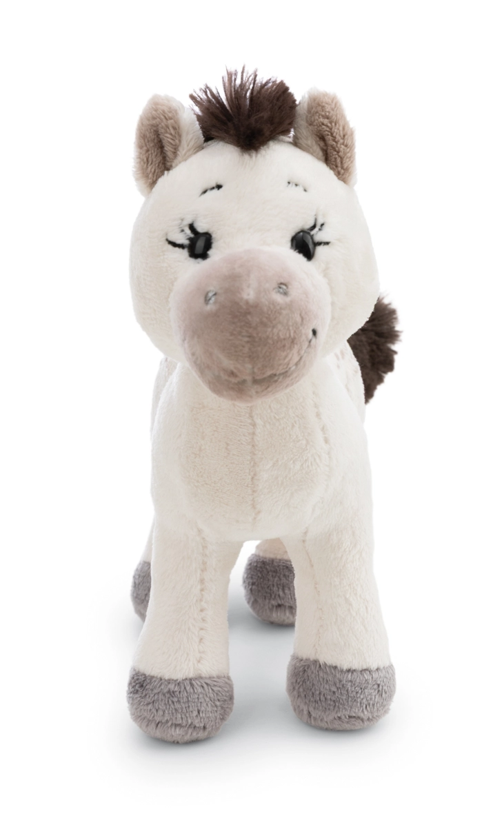 Mony póni elbűvöl elegáns fehér bundájával, sötétbarna sörényével és farkával, valamint a hátulsó részen megjelenő finom foltos mintával. Az álló kivitel és a minőségi varrás tartósságot biztosít a mindennapos játékhoz, miközben a puha felület végtelen ölelgetésre csábít.