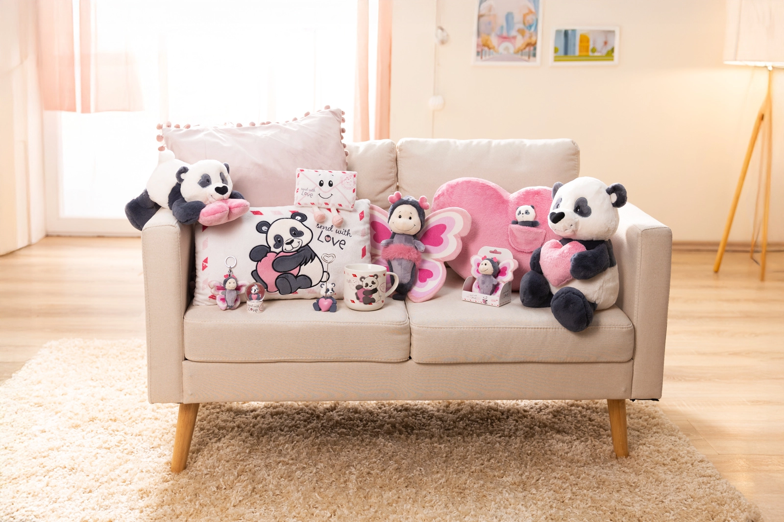 Rendkívül puha plüss és kényelmes fekvő forma, a Love panda ideális társ összebújáshoz, elalváshoz és pihenéshez.