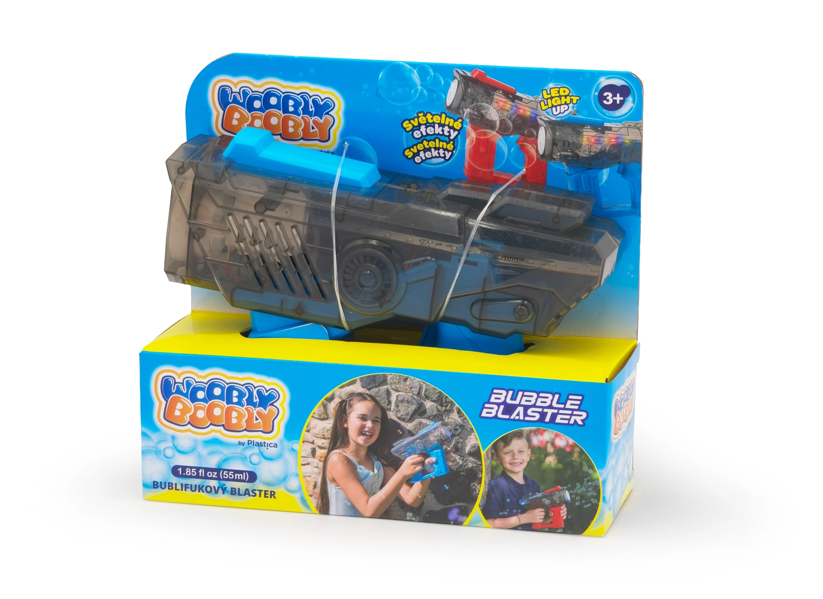 A WOOBLY BOOBLY buborékfúvó blaster bármely délutánt színes látványossággá varázsol. A nagy teljesítményű buborékképző rendszer és a színes LED-fények kombinációjának köszönhetően valódi varázslatos hangulatot teremt – a gyerekek imádni fogják a csillogó buborékáradatot és a fényshow-t.