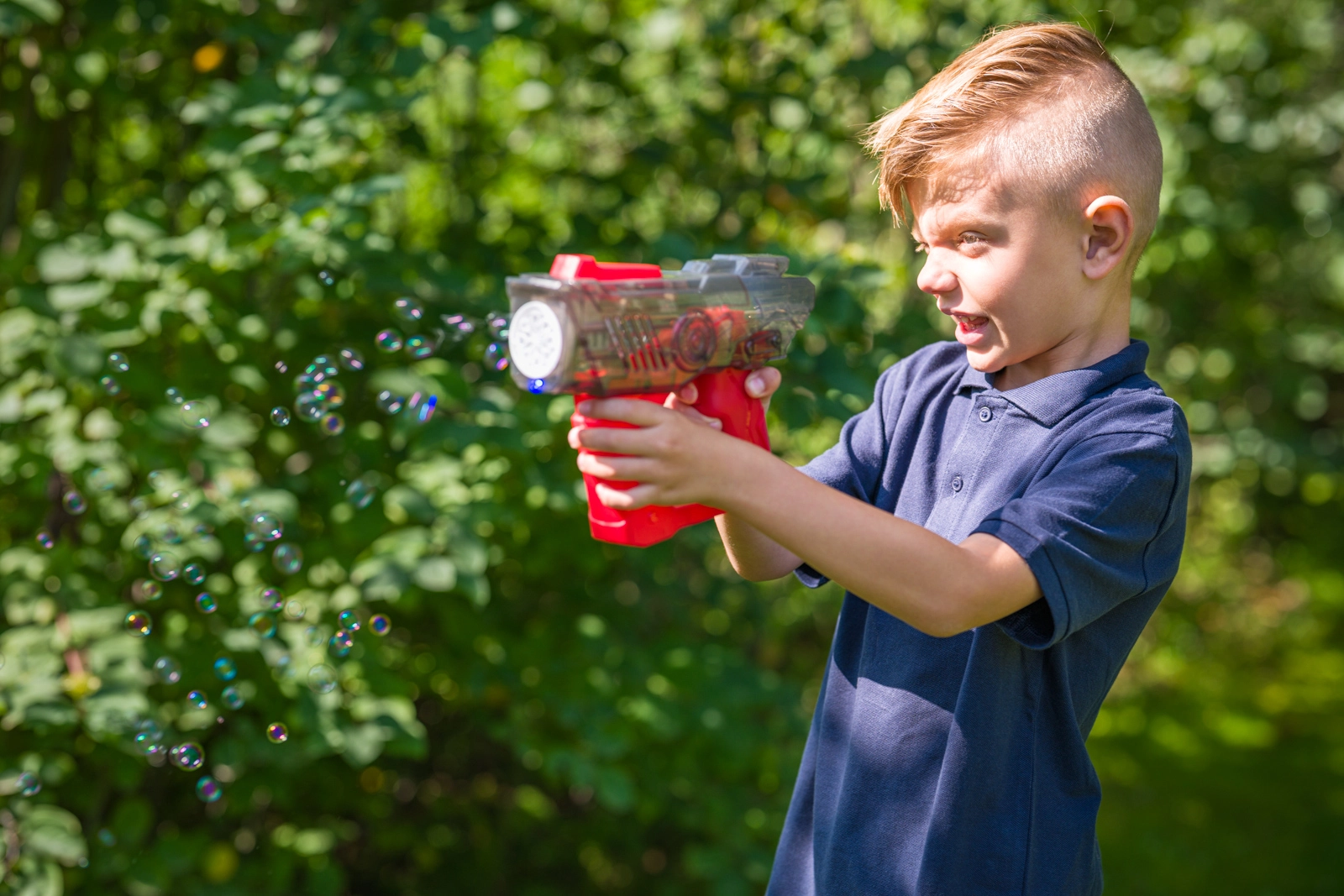 - LED-fényhatásokkal ellátott buborékfúvó blaster