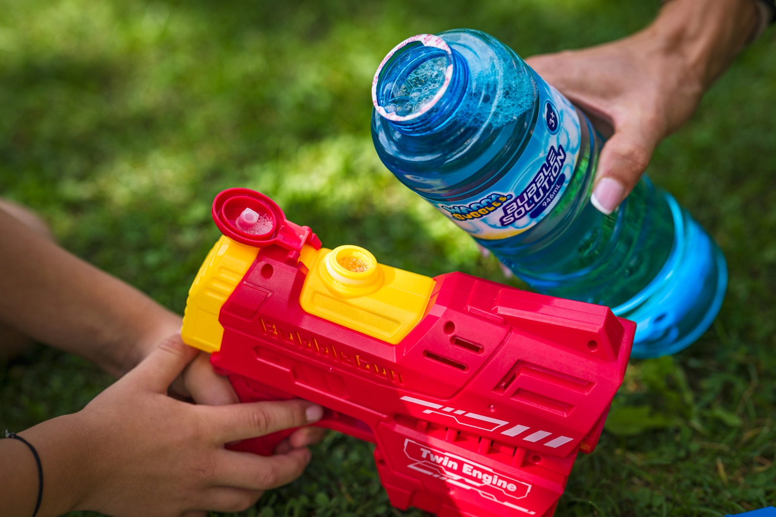 Remekül kiegészíti a buborékfújó pisztolyokat és más buborékjátékokat – gyors és tiszta utántöltés felesleges pazarlás nélkül.