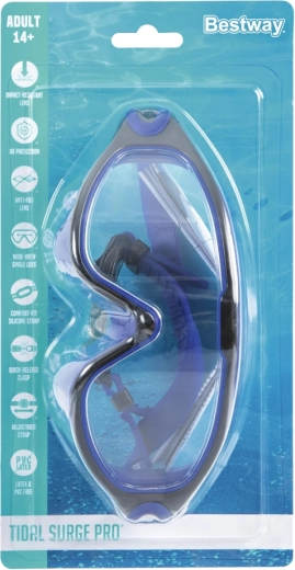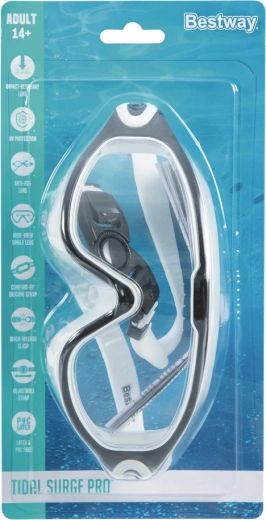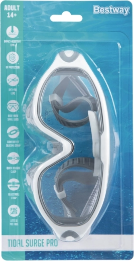 Fedezze fel a kényelmet és a tiszta látást a Tidal Surge Pro úszószemüveggel. A tartós polikarbonátból készült, UV-szűrővel és antifog bevonattal ellátott, széles látószögű lencséknek köszönhetően a párásodás és a kellemetlen vakítás nélkül koncentrálhat az úszásra. A puha tömítés kellemesen illeszkedik az arcra és megakadályozza a víz bejutását.