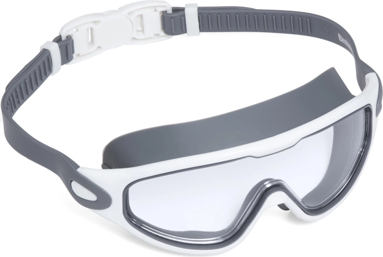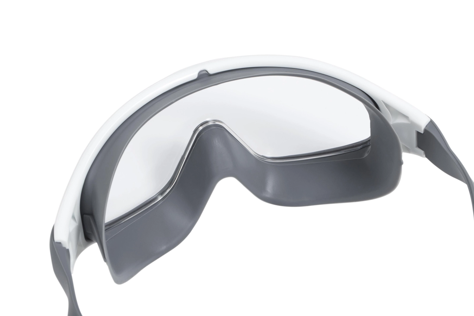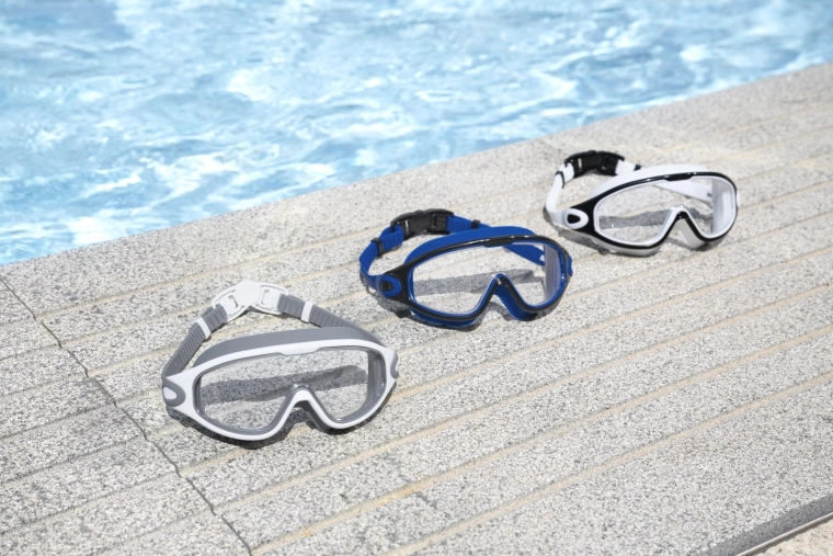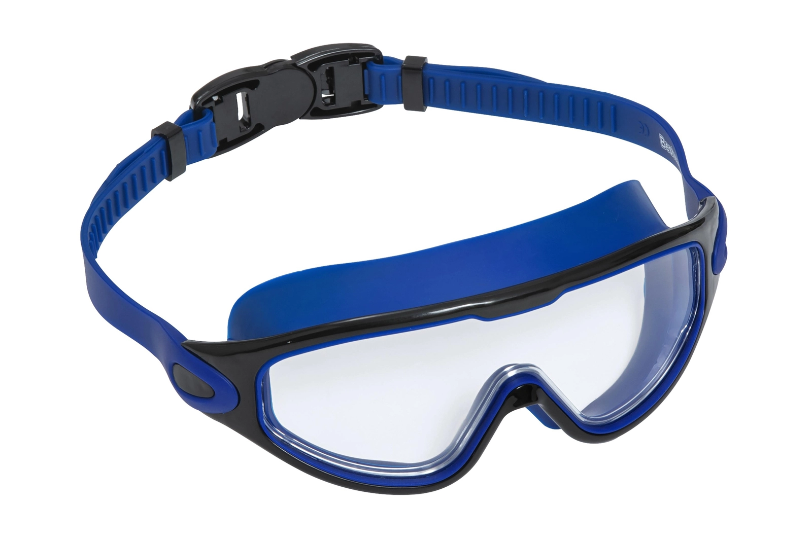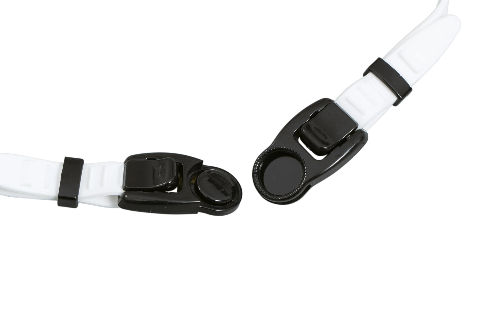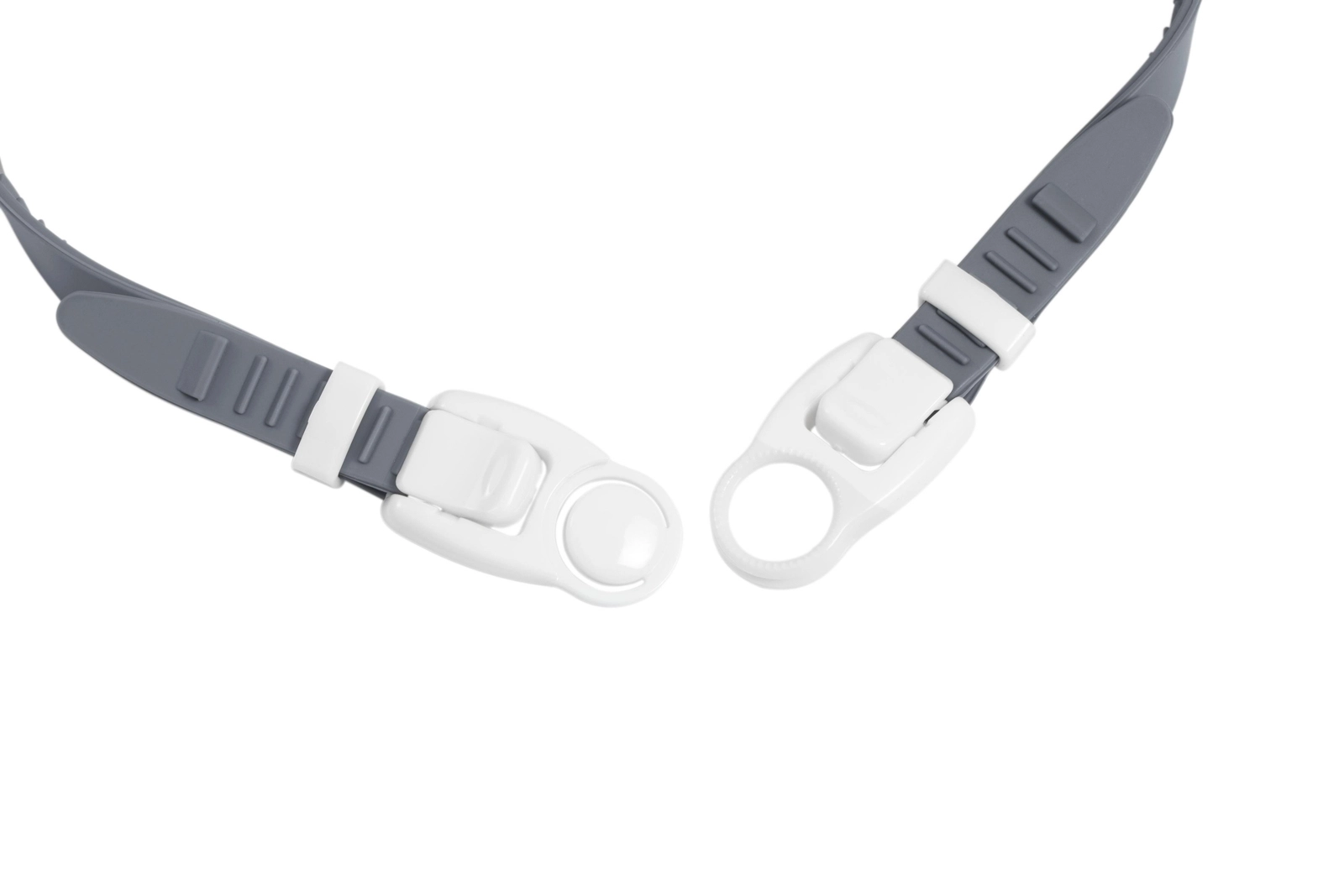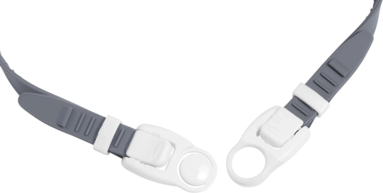 Az ergonomikus, gyorskioldós csattal ellátott szilikon pánt villámgyors és pontos beállítást tesz lehetővé akár nedves kézzel is. A kialakítás latex- és PVC-mentes, így kíméletes a bőrhöz. A szemüveg több színváltozatban elérhető – véletlenszerű kiválasztással küldjük.