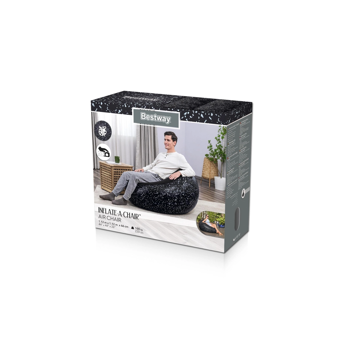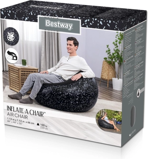 Tegye kényelmessé a pihenést bárhol, bármikor. A Bestway Inflate‑A‑Chair felfújható karosszék flokkolt (bársonyos) felületével kellemes tapintású és nem csúszik. A stabil formáról a Coil‑Beam szerkezet és a két légkamra gondoskodik, így a szék hosszabb ülésnél is kényelmes és tartós támaszt ad.