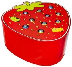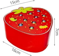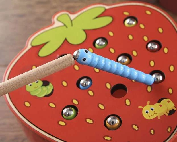 Fogd meg a kukacot! Ez a bájos, eper alakú fa játék hosszan lefoglalja a gyerekeket. A mágneses pálcával kihúzzák a kukacokat a nyílásokból, majd visszahelyezik őket, miközben gyakorolják a finommotorikát, a pontosságot és a koncentrációt. A fa természetes tulajdonságait tartós kivitelezés és biztonságos, sima élek egészítik ki.