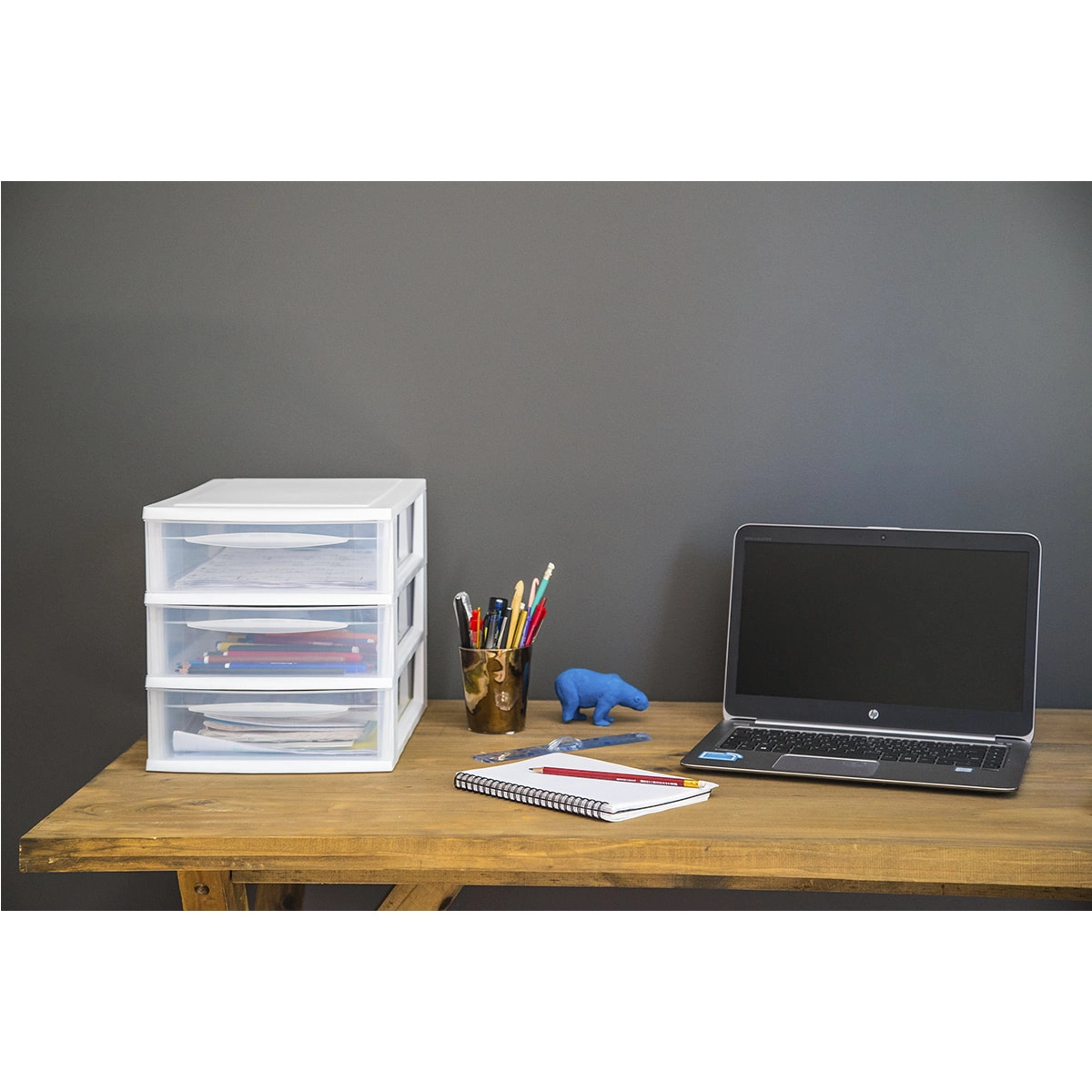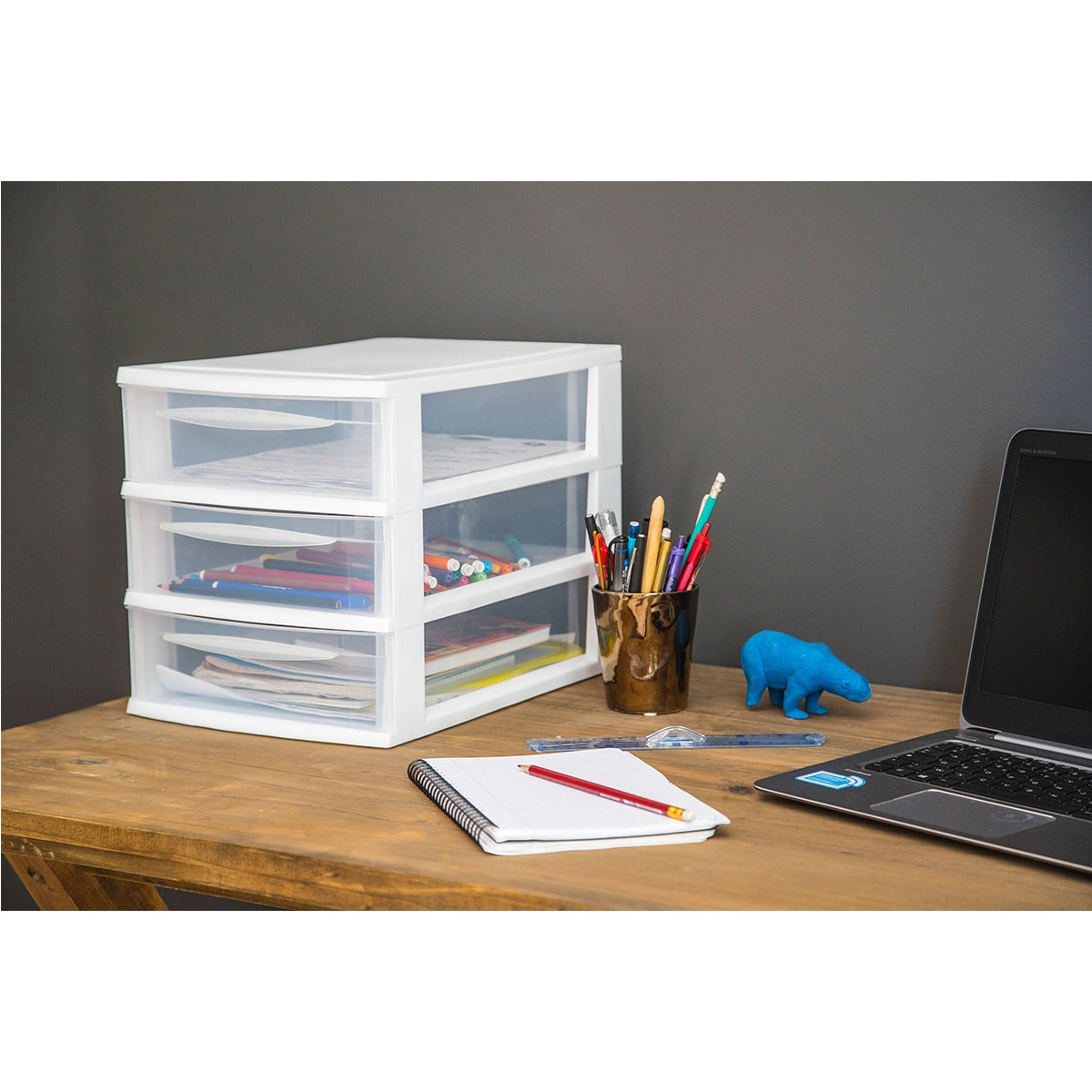 Rendezze íróasztalát, otthoni irodáját vagy diákszobáját a praktikus, 3 keskeny A4-es fiókkal ellátott moduláris rendezővel. Az áttetsző előlapok gyors vizuális betekintést adnak a tartalomba, miközben a kompakt méretek helyet takarítanak meg és mindent kéznél tartanak.