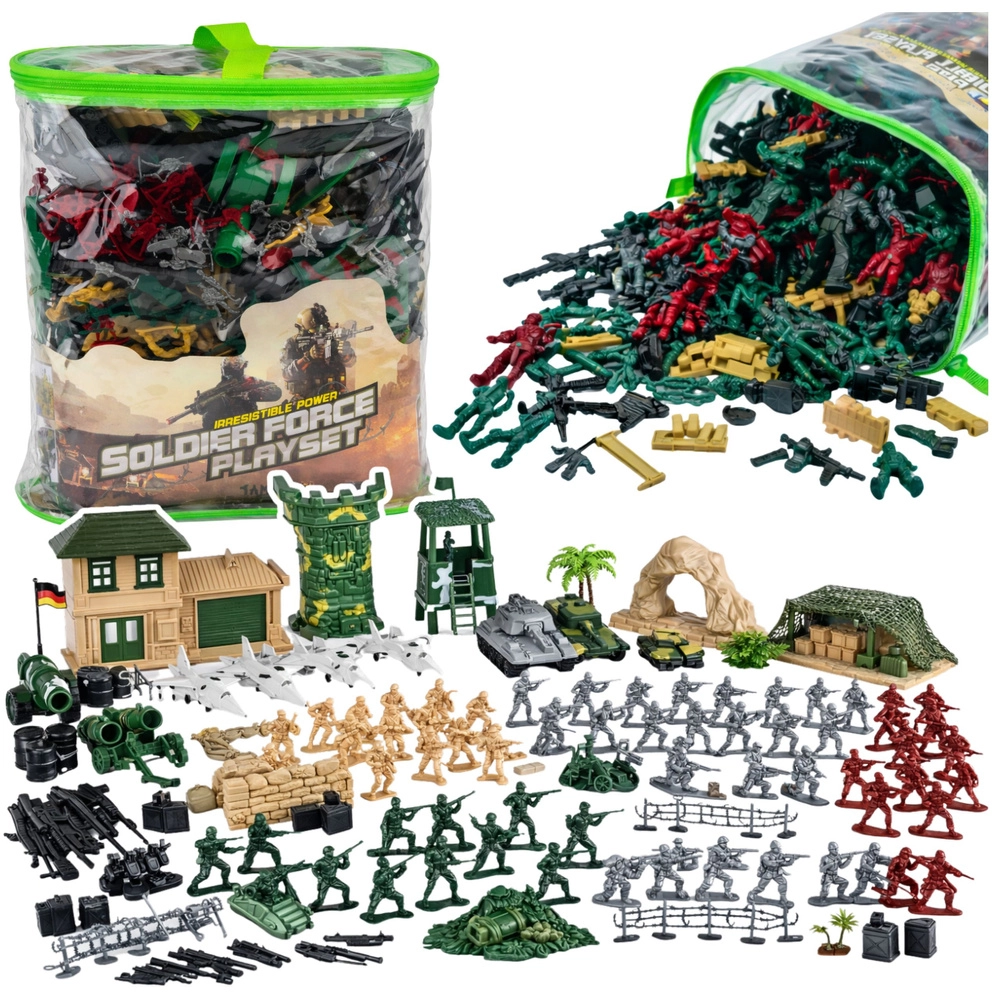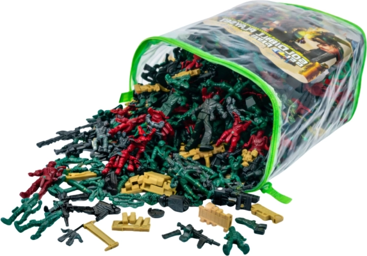 Fedezze fel a kibővített katonai készletet kreatív játékhoz akár 300 darabbal – katonák, járművek, ágyúk, fegyverek és gazdag kiegészítők. Tartós műanyag figurák, amelyek ösztönzik a fantáziát, a finommotorikát és a csapatmunkát. A praktikus átlátszó cipzáras táska megkönnyíti a tárolást és a szállítást. Ideális akciódús küldetésekhez otthon, a szabadban és utazás közben is.