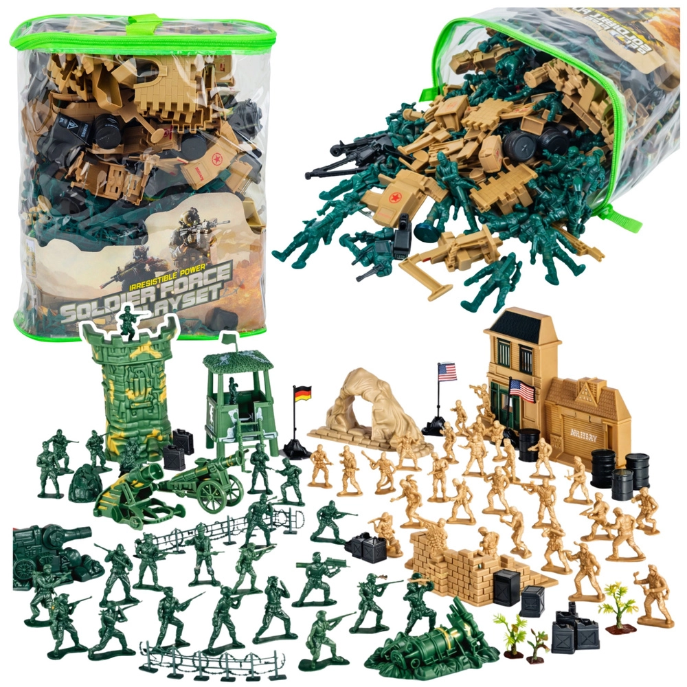 Ez az átfogó katonai készlet akár 400 darabot kínál gyerekeknek végtelen csatákhoz, küldetésekhez és bázisvédelemhez. Találsz benne katonákat, járműveket, ágyúkat, akadályokat és egyéb katonai kiegészítőket. A csomag része egy átlátszó, cipzáras táska az egyszerű tároláshoz és hordozáshoz. A strapabíró műanyag figurák támogatják a kreatív játékot, fejlesztik a képzeletet és a finommotorikát – ideális önálló és csapatjátékhoz, otthon és a szabadban is.