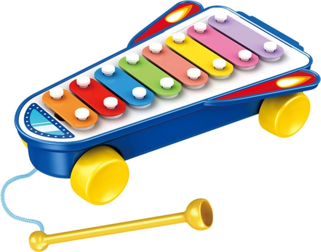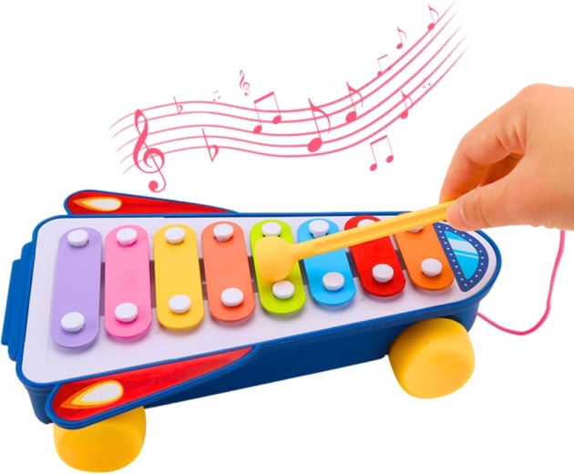 Szórakoztató gyermek xilofon zongorácska rakéta formában, amely a zenei felfedezést mozgással egyesíti. A színes lamellák és a mellékelt ütő fejlesztik a hallást, a koordinációs képességeket és a finommotorikát. A kerekeken való mozgás menet közbeni hangeffekttel támogatja az aktív játékot és az első zenei próbálkozásokat.