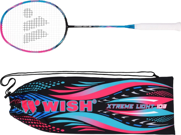Ultra könnyű tollaslabda ütő a WISH Xtreme Light 103 gyors, pontos és támadó játékhoz. Mindössze 72 g tömegének, a grafén kompozitnak és a enyhén fejnehéz kiegyensúlyozásnak köszönhetően kiváló irányíthatóságot, stabilitást és határozott lecsapásokat kínál. Gyárilag húrozva, azonnal játékra kész, kényelmes G2 markolattal és praktikus tokot is tartalmaz.
