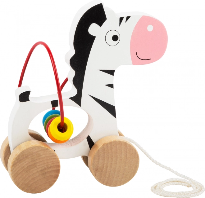 A zebra játékos kivitelezést kínál kerekekkel, húzós madzaggal mozgatható. A gyöngypályának köszönhetően a gyermekek javíthatják motorikus készségeiket.