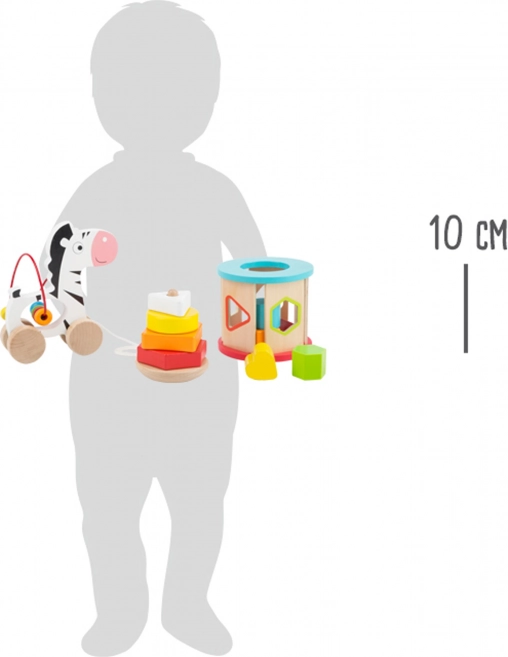 Ez a játékszett a legkisebb gyerekek számára készült, és változatos tevékenységeket kínál a motorikus fejlődés támogatására. A szett minden egyes játéka gondosan készült fából, vonzó színvilággal, ami játékra csábít:
