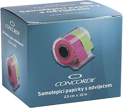 Praktikus, adagolós tekercses öntapadó jegyzetpapírok két neon színben (rózsaszín és zöld) gyors jegyzeteléshez és jelöléshez. Minden tekercs 2,5 cm széles és 10 m hosszú, hátoldala teljes felületén ragasztós. A beépített vágónak köszönhetően pontosan olyan hosszú cetlit téphet le, amennyire szüksége van. Kiválóan tapad papírra és sima felületekre.