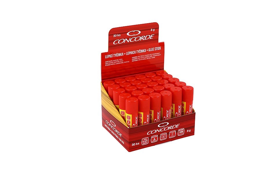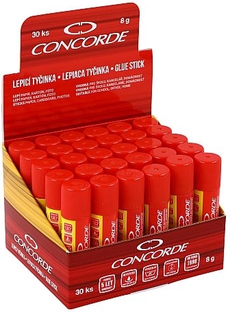 Praktikus és megbízható CONCORDE ragasztóstift 8 g tömeggel, mindennapi használatra irodában, iskolában és otthon. Gyors és tiszta ragasztás papírhoz, kartonhoz, textilekhez és fényképekhez, nem szárad ki, gyerekek számára is biztonságos, és könnyen kimosható. Bevált minőség – tesztelve, akár 5 évig ragaszt.