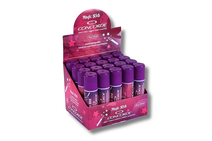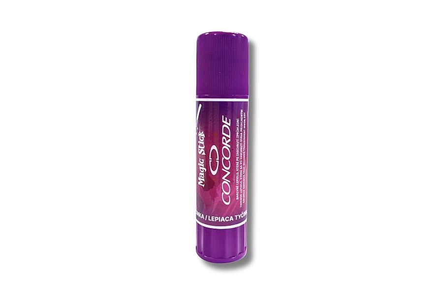 A CONCORDE Magic Stick ragasztóstift megbízható segítőtárs a mindennapi ragasztáshoz otthon, az iskolában és az irodában. A felvitelnél látható ibolyaszín pontosan megmutatja, hova került a ragasztó, száradás után pedig teljesen átlátszóvá válik a tiszta, professzionális eredményért.