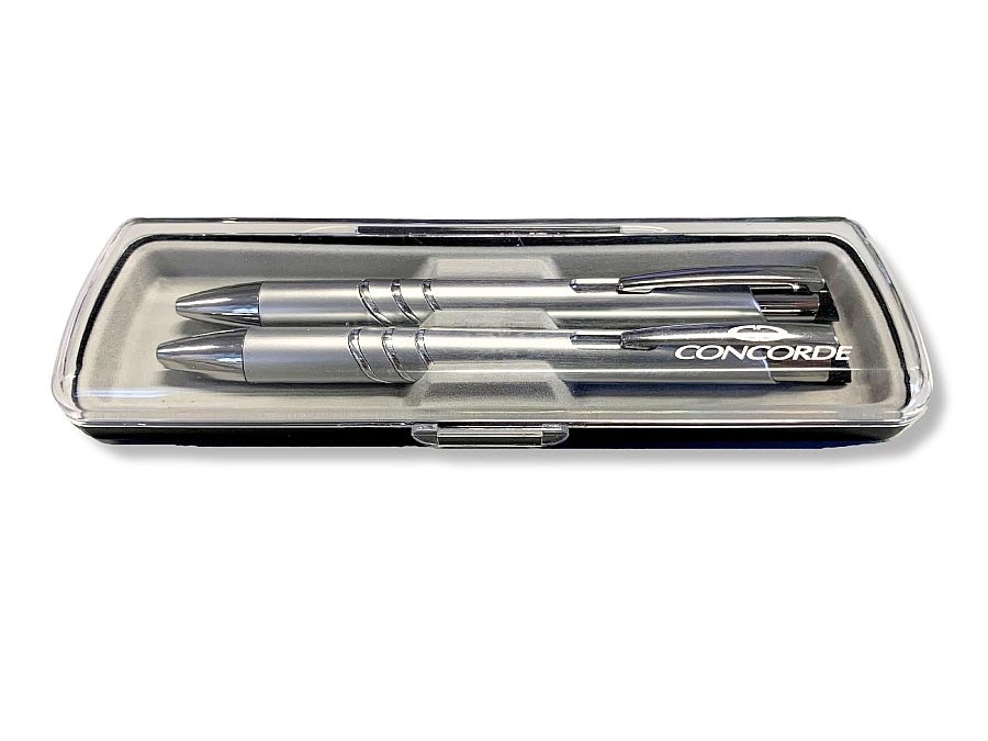 Az elegáns CONCORDE ADRIANA ajándékszett műanyag dobozban örömet szerez mindenkinek, aki szereti a minőségi írást. Tartalmaz egy 0,8 mm-es golyóstollat és egy 0,5 mm-es mechanikus ceruzát műanyag tolltesttel és fém klipsszel. A golyóstoll kompatibilis a kék Silver (4441) betéttel, így a csere egyszerű, az élettartam pedig hosszú.