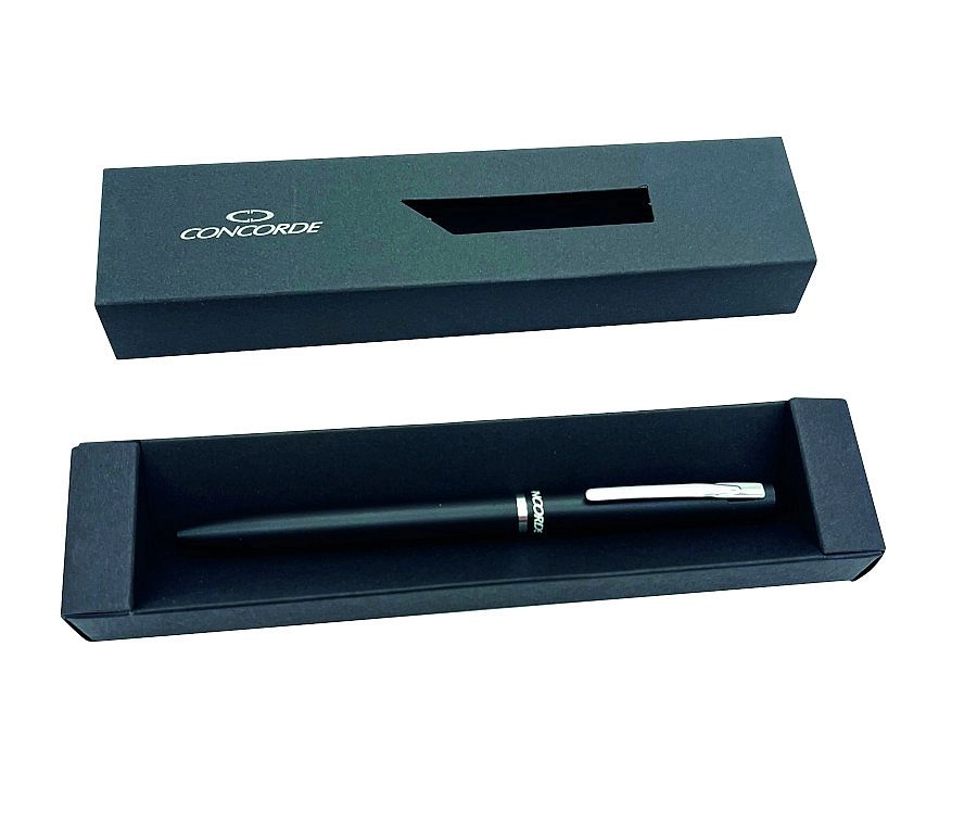 Megbízható és reprezentatív tollat keres munkához vagy ajándékba? A CONCORDE Focus fém golyóstoll az elegáns fekete dizájnt praktikus funkciókkal ötvözi. A forgómechanizmus könnyű hegykioldást és kényelmes használatot biztosít kupak nélkül.