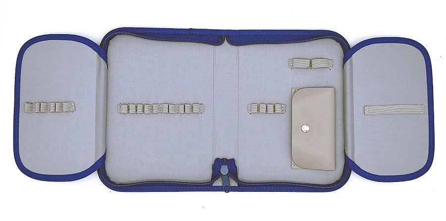Belül 23 rugalmas pánt található ceruzákhoz, tollakhoz, filcekhez, vonalzóhoz vagy radírhoz, továbbá zárható zsebecske az apróságoknak, valamint mindkét fül hátoldalán átlátszó rekeszek a heti órarendhez. A praktikus cipzáras záródás mindent biztonságosan a helyén tart.