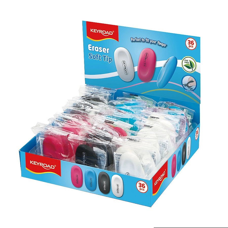 Fedezze fel a Keyroad Soft Tip radírt, amely az ergonomikus formát a finom és hatékony radírozással ötvözi, így eltávolítja a ceruza nyomát felesleges maszatolás nélkül. Ideális iskolába, egyetemre és irodába.