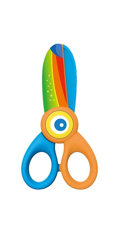 Vidám és biztonságos gyerekolló a legkisebbeknek Tukán motívummal és 12,5 cm hosszúsággal. Műanyag kivitelű, lekerekített heggyel és fémpenge nélküli biztonságos kialakítással, ami ideális az első vágásokhoz. Kényelmes fogást kínál, és bliszteren kerül forgalomba.