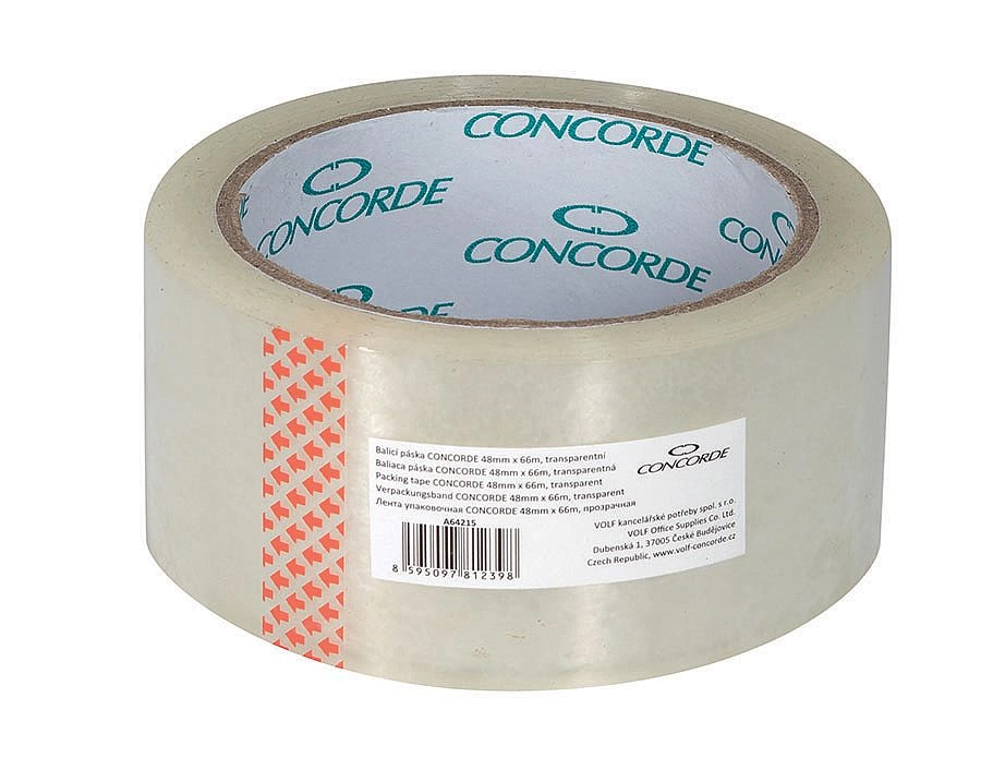 A kiváló minőségű, átlátszó CONCORDE csomagolószalag 48 mm szélességgel és 66 m hosszúsággal ideális professzionális csomagoláshoz raktárakban és csomagolósorokon. A vízbázisú akril ragasztónak köszönhetően tiszta és megbízható ragasztást, hosszú távú tapadást és öregedéssel szembeni ellenállást biztosít. A 42 µm vastagság szilárdságot és stabilitást nyújt a dobozok lezárásakor.