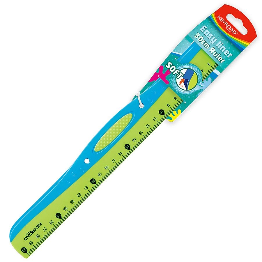 A KEYROAD Easy Liner 30 cm-es vonalzó ideális választás iskolába, irodába és otthonra. A kétszínű kialakítás és az ergonomikus gumis zónák növelik a kényelmet rajzolás és mérés közben, a vonalzó nem csúszik a kézben és stabilabban illeszkedik.