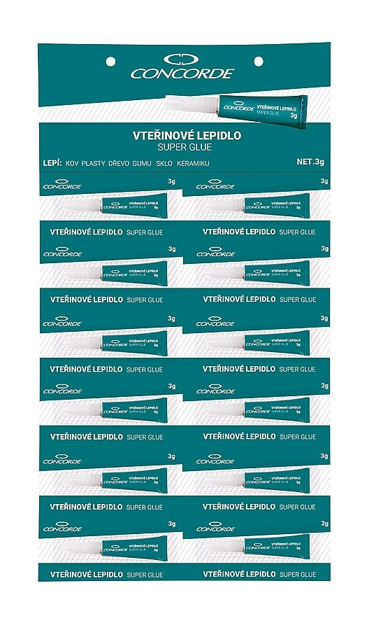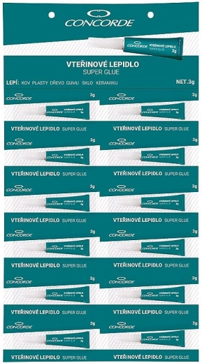 Univerzális CONCORDE pillanatragasztó 3 g tömeggel gyors és erős javításokhoz otthon és a műhelyben. Alkalmas fémhez, műanyaghoz, fához, gumihoz, üveghez és kerámiához. Azonnali hatást biztosít, és kikeményedés után átlátszó kötést hagy akár 140 kg/cm² szilárdsággal.