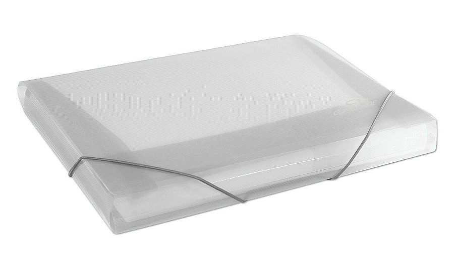 Praktikus és tartós, A4-es formátumú gumis irattartó mappa a CONCORDE márkától, átlátszó kivitelben. 3 füllel a dokumentumok biztonságos tárolásához, 450 µm vastag, erős, rácsmintás műanyagból készül, és a fülek behajtása után akár 3,5 cm-ig iratdobozzá bővíthető.