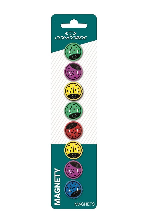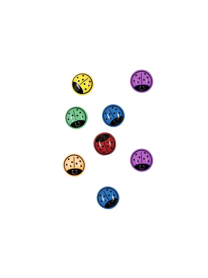 Aranyos, KATICABOGÁR mintás mágnesek 20 mm átmérővel feldobják a faliújságokat, hűtőszekrényeket és táblákat. Praktikus, 8 db-os bliszteres csomagolás, ideális irodába, iskolába és otthonra.