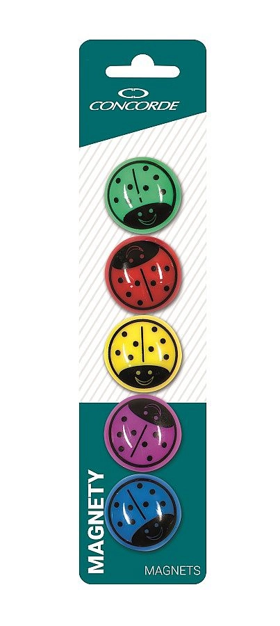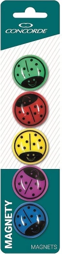 Adjon játékos megjelenést dokumentumainak és üzeneteinek a kedves katicabogár alakú mágnesekkel. A nagyobb, 35 mm-es átmérő kényelmes kezelhetőséget és biztos rögzítést nyújt fém felületeken, például táblákon, hűtőn vagy mágneses síneken.