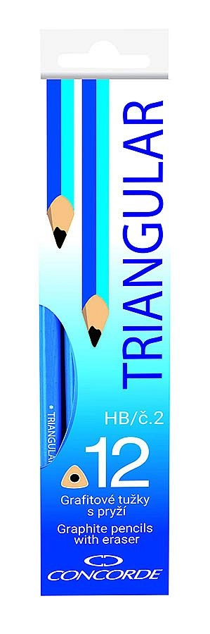 Praktikus készlet minőségi CONCORDE grafitceruzákból háromszögletű, ergonomikus formával a kényelmes íráshoz és rajzoláshoz. A HB (2-es) keménység ideális a mindennapi használathoz, minden ceruza beépített radírral rendelkezik a gyors javításokhoz. Strapabíró fa test kék lakkozással, 12 db-os csomag papírdobozban.