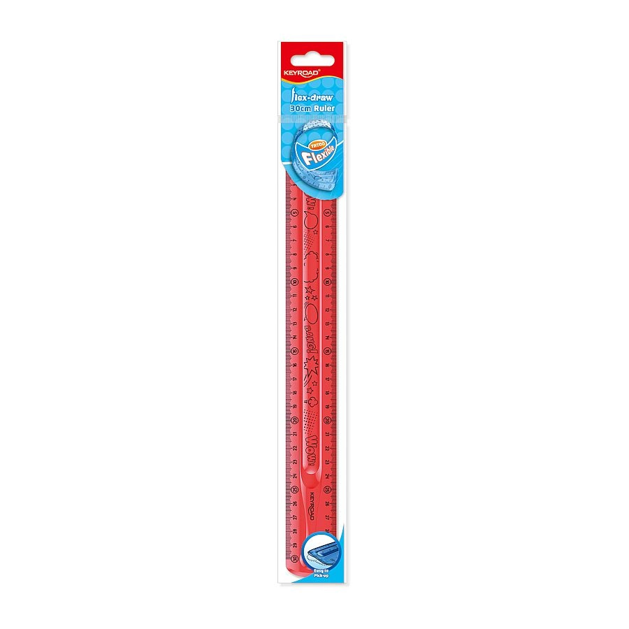 A KEYROAD Flexi 30 cm-es, rugalmas és tartós vonalzó hajlítható kivitelével, magas mechanikai ellenállásával és vonzó, átlátszó dizájnjával tűnik ki. Iskolába és irodába egyaránt ideális, ráadásul ftalátmentes és piros színű.