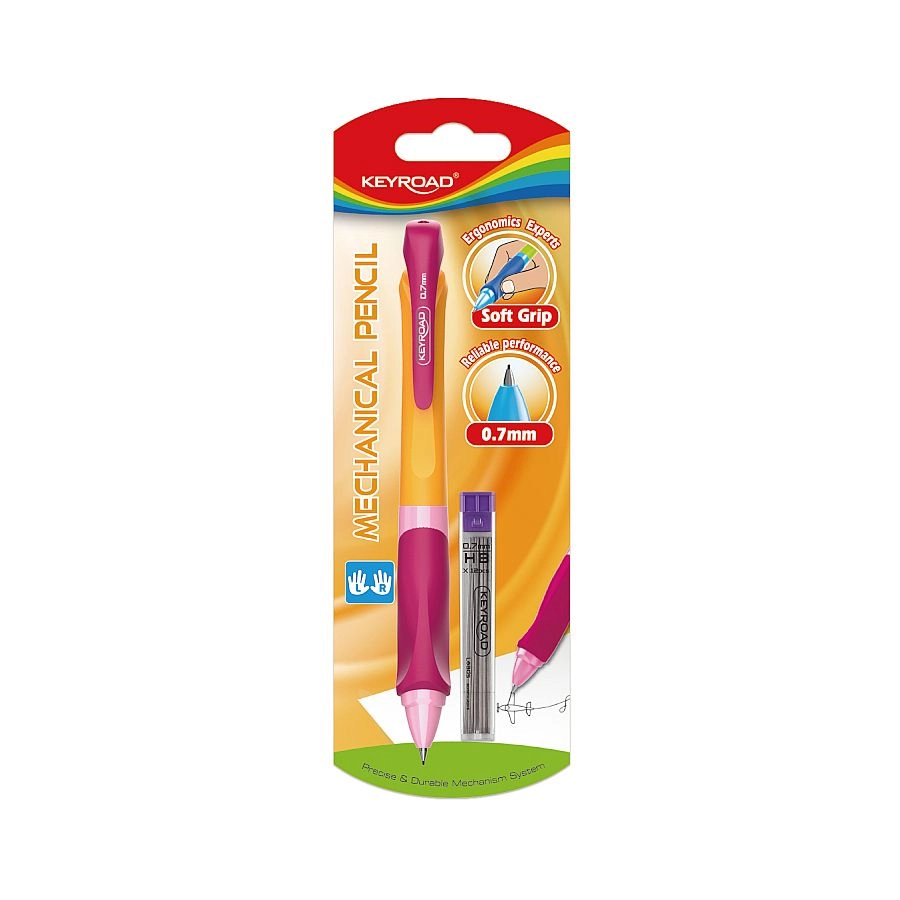 A KEYROAD Neo 0,7 mm mechanikus ceruza ideális választás iskolába, irodába és otthonra. Az ergonomikus, puhított markolatnak köszönhetően hosszabb írásnál is kényelmesen tartható, a minőségi tolómechanika pedig akadásmentes, folyamatos hegykinitást biztosít.