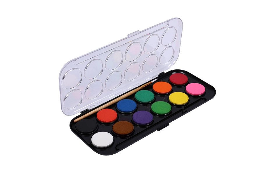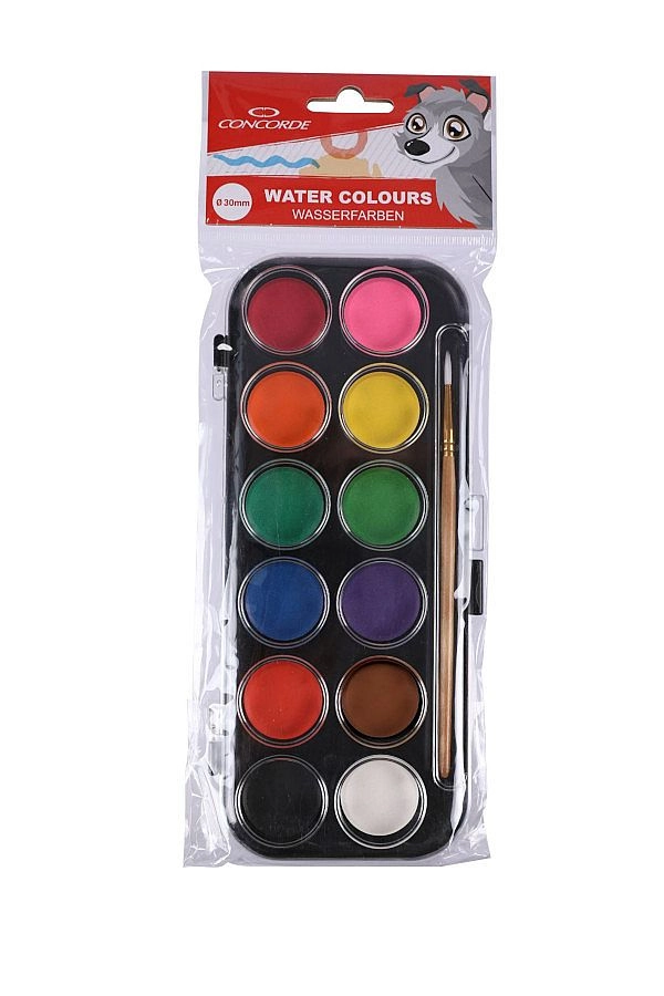 Fedezze fel a megbízható vízfestékeket iskolai és otthoni alkotáshoz. A CONCORDE készlet 12 gondosan válogatott árnyalatot tartalmaz praktikus tokban, amely védi a festékeket és az átlátszó fedélnek köszönhetően gyors áttekintést biztosít. A nagy, 30 mm-es átmérő a gyerekek és a kezdők számára is megkönnyíti a munkát.