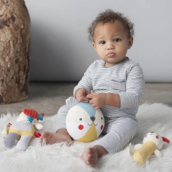 A puha textil csörgő maci finom hangingerrel és kellemes fogásélménnyel kényezteti a babát. Organikus anyagainak köszönhetően az érzékeny bőrre is alkalmas, és támogatja a finommotorika és az érzékelés fejlődését.