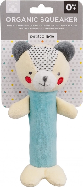 A Petit Collage aranyos mackó alakú sípoló csörgője segít a gyerekeknek fejleszteni a finommotorikát és az érzékelést. Puha, könnyen megfogható a kis kezek számára, és organikus, GOTS tanúsítvánnyal rendelkező pamutból készült, növényi alapú festékekkel – ideális mindennapi játékhoz és utazás közbeni szórakozáshoz is.