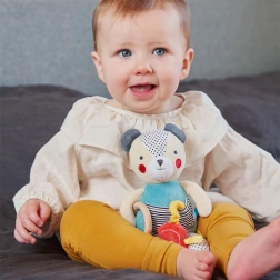 A Petit Collage rágókás macija a minőségi kivitelezésével és kíméletes anyagaival tűnik ki. A puha textilt fa gyűrűvel ötvözi, hogy ölelgetés közben kényelmet, rágáskor pedig megkönnyebbülést nyújtson. Átgondolt textúrái és színei révén támogatja a taktilis, vizuális és motoros fejlődést már az első napoktól.