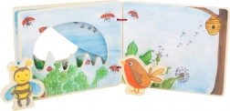 Fából készült képeskönyv + 2 fafigura (méhecske, madárka)