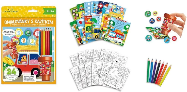 A CONCORDE bélyegzős színezőkészlet minden kis alkotót és autórajongót megörvendeztet. A színezők, feladatok, matricák és a bélyegző kombinációjának köszönhetően a gyerekek fejlesztik finommotorikájukat, kreativitásukat és fantáziájukat.