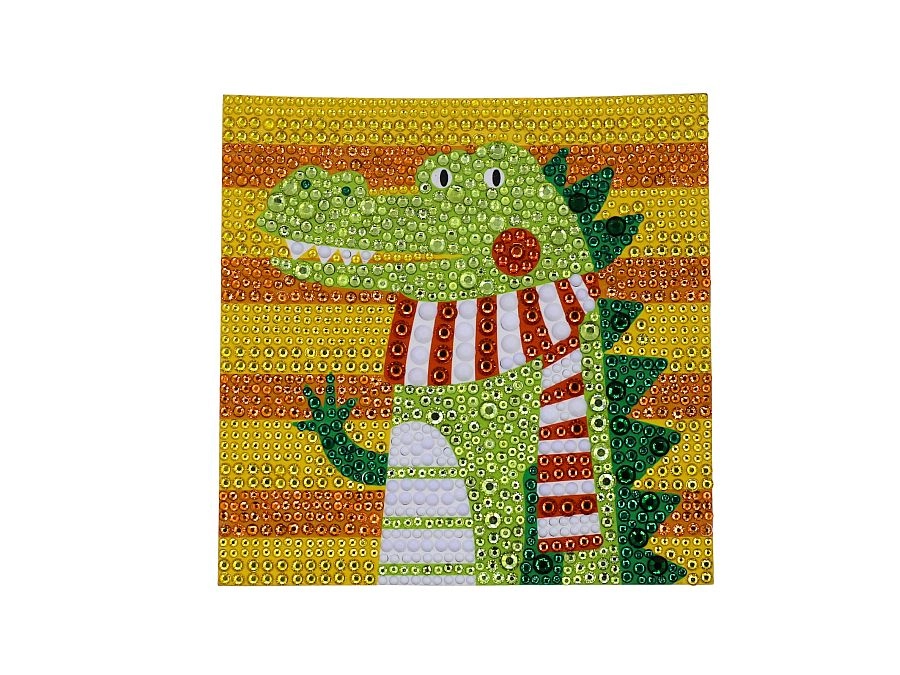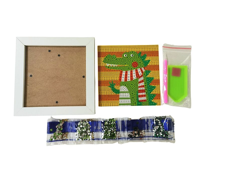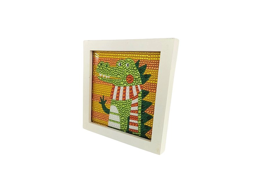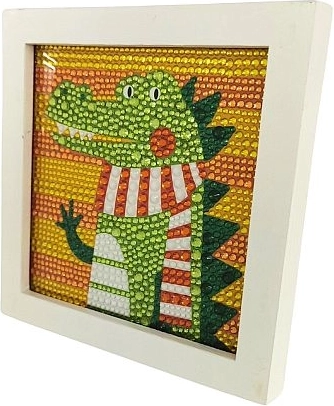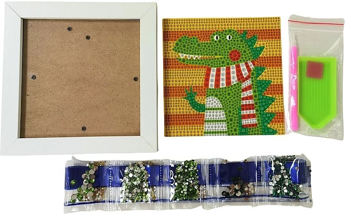 Ez a krokodil motívumú kreatív gyémántfestő készlet örömet szerez gyermekeknek és felnőtteknek egyaránt. A színes sablonnak és az egyszerű applikációnak köszönhetően a toll és a szilikon gél segítségével bárki elkészíthet egy csodás, csillogó képet. A kész művet büszkén kiállíthatja a mellékelt fehér képkeretben.