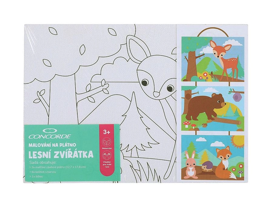 A CONCORDE vászonfestő készlet erdei állatkák motívummal remek választás otthoni alkotáshoz, ajándéknak vagy egy vidám délutánhoz. A sablonoknak köszönhetően kezdőknek is megfelelő, de örömet szerez azoknak a gyerekeknek is, akik szeretnek saját elképzelés szerint alkotni. A kész képeket könnyen felakaszthatod, és díszítheted velük a gyerekszobát.