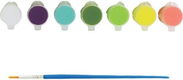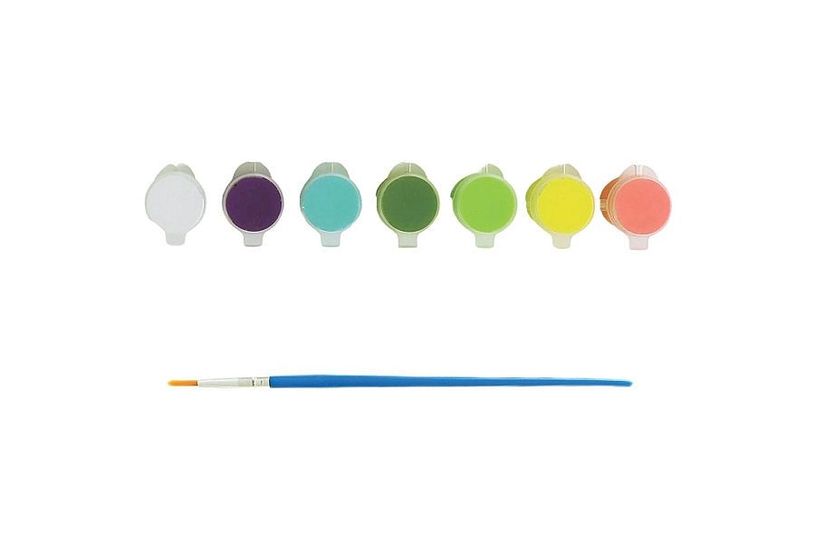 - Teljes csomag – 20,3 × 28 cm vászon, 7 tégely akrilfesték, 1 ecset.