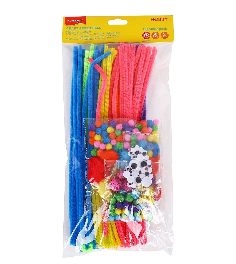 Praktikus készlet pomponokkal, szőrös drótokkal és öntapadó szemekkel számos színben és méretben. Tökéletes kiindulópont tucatnyi kreatív ötlethez.