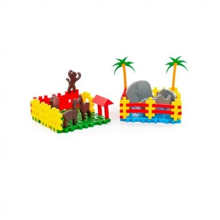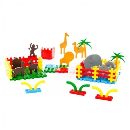 A Blok Zoo építőkészlet színes, fantáziadús világot hoz el – a gyerekek az élénk színű elemekből könnyedén építhetnek kifutókat, utakat, pálmákat, és elhelyezhetik bennük kedvenc állataikat, például elefántot, zsiráfot vagy majmokat. A moduláris elemek egyszerűen összekattinthatók és stabilan tartanak, így az építés intuitív és szórakoztató.
